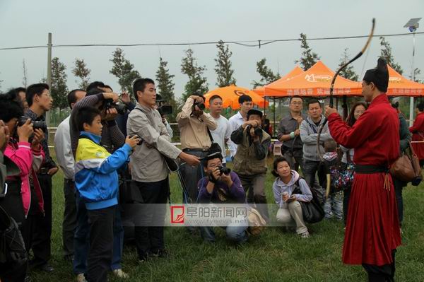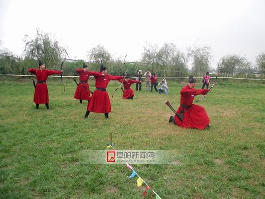 在颍河岸边的三角洲公园里,有一群神情轻松的人特别惹人注目,看他们手里拿的东西就足以吸引每位过往行人的目光,那不是古代人骑射用的弓箭吗?看他们目光专注地看着靶心,只听得“嗖”一声,箭羽干净利落地直中靶心。