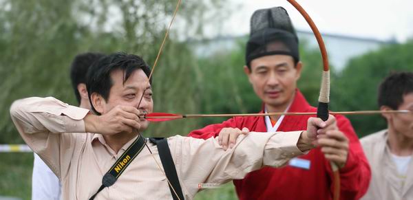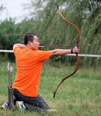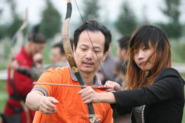 射箭爱好者们为记者表演了一把射箭的艺术:传统的地中海式射法——弓弦拉至鼻尖,潇洒放开;豪放美观的蒙古式射法——稍稍抬弓使其与水平面有一个夹角,弓弦拉至耳后,松弦时随弹力有一个回手的动作,颇有点“弯弓射大雕”的气派。看到箭头支支入靶,大家不禁咧开嘴笑了。