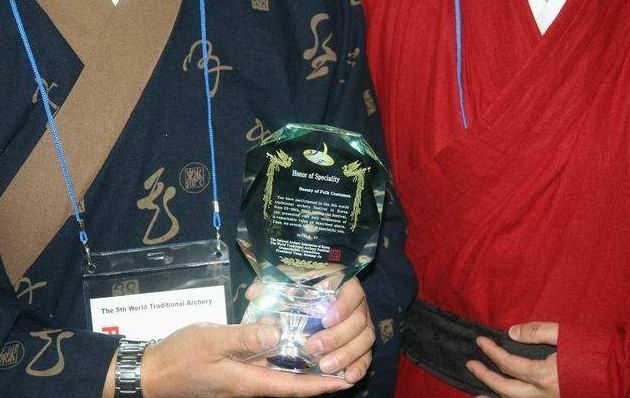 今年中国队只得了一个小奖(最佳服装奖),其实这只是一个安慰奖。 我相信不久的将来,我们中国传统弓的成绩会像中国的现代弓一样取得非常好的成绩,在世界传统弓年会上拿上真正的成绩奖回来!