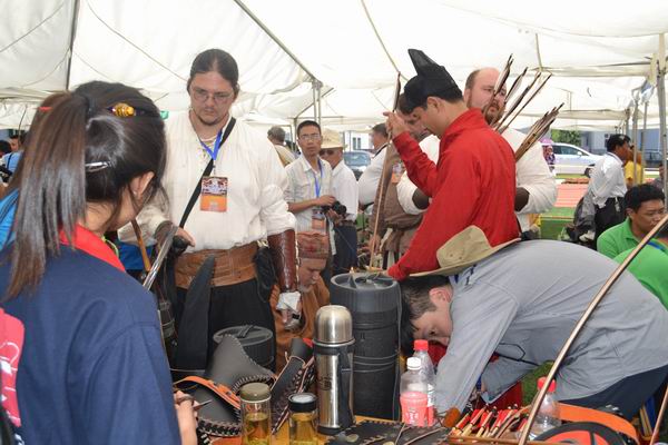2012青海 河湟国际民间射箭邀请赛,阿利弓箭组队参加。 开幕式 比赛中 赛场上的 阿利弓箭 台湾弓友使用的阿利汉弓 阿利射箭队员接受青海电视台采访 各国弓友选购阿利弓箭中 外蒙弓友选购阿利弓箭 美国制弓大师卢卡斯挑选阿利竹箭