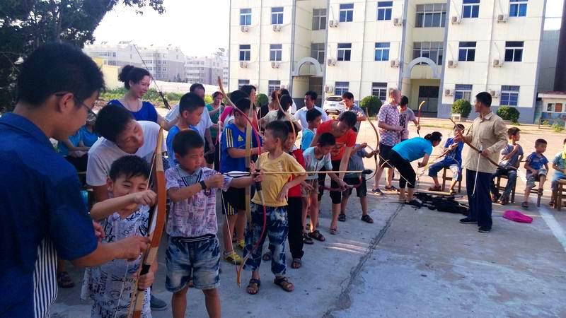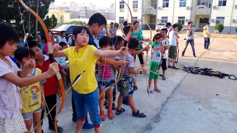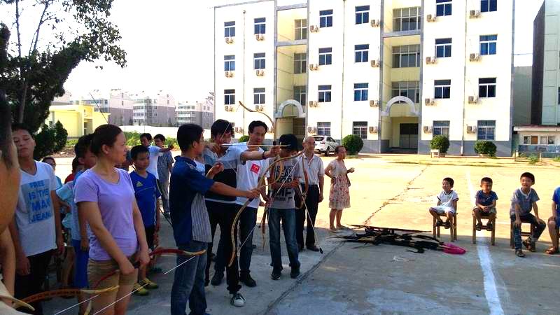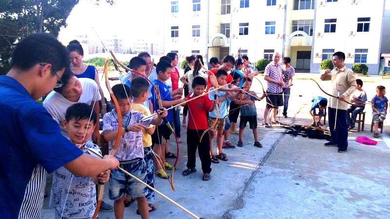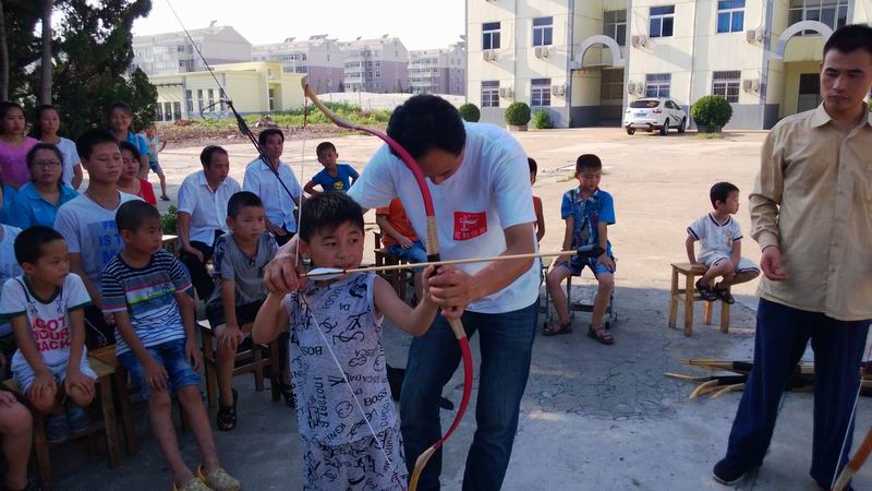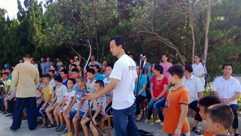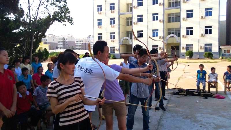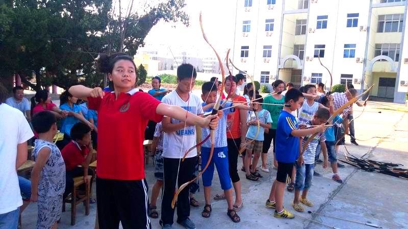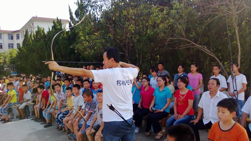 阿利弓箭应阜阳绿色学校邀请教授学生射箭