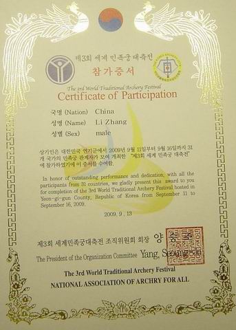 应世界传统弓箭大会2009组委会邀请参加了今年的比赛