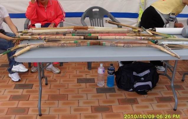 今年应邀参加了2010年韩国传统弓箭年会,比赛规则和往年类似,稍有改动。靶子都是三分靶,每轮5箭,5个靶位,分别是