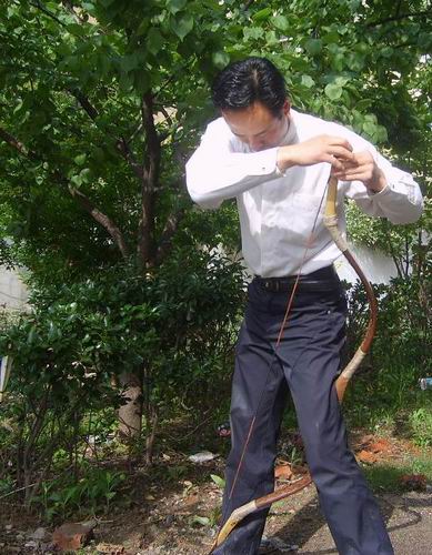 产品详情 简单描述: 阿利汉弓的上弦方法 弓稍:桑木。 弓体:玻璃纤维,碳纤维高温预压成型,结实耐用。 弓弦:国产高强度尼龙弦(进口飞速弦加50元) 装饰:弓体弓把包头层纯牛皮,弓稍两头贴牛角。出箭点位牛骨头。 长度:1.38米 拉力:20-60磅 拉距:安全拉距33英寸(84厘米)(特殊 拉距须定做) QQ:28091272 QQ:88497820 淘宝店铺连接:http://shop63291353.taobao.com/ (因为淘宝禁止发布弓箭图片,所以淘宝店铺没有弓箭 图片,淘宝只是接受付款的一种方式)
