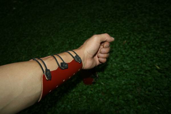 二层牛皮制作护臂,30元一只。 材质:二层牛皮,厚度3毫米 现货以黑色二层牛皮为主。 (此款牛皮护臂缺点:夏季出汗是易掉色,所以,夏季佩戴要穿深色的衣服)