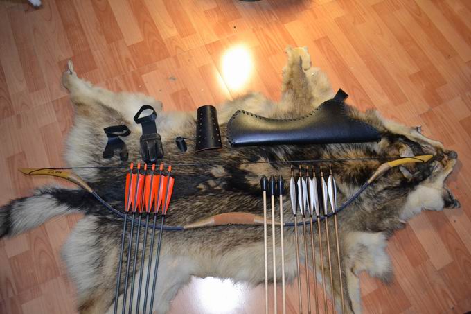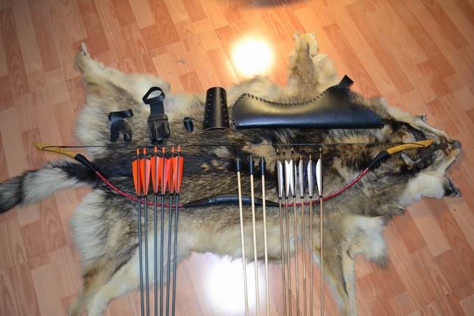 套装配置例举:猪皮弓350元+弓弦+黑色布弓袋+碳素箭6只150元+箭囊190元+竹箭6只90元+两指护指30元+三指护指40元+护臂30元+共计880元,现在只需850元另外赠送牛皮扳指一个,鸣笛木箭3只 (新手套装,可以让新手拥有配套的弓 箭和防护用品,套装里的箭囊可以根据个人喜好更换同价位的款式) |