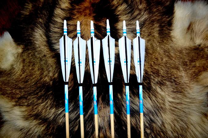 产品详情 简单描述: 品名:装饰杆木箭 材质:白松或者白木(任选) 羽毛:进口材料制作火鸡羽毛 长度:70-87厘米(任选)通用长度82厘米 颜色:黑色火焰、蓝色火焰、红色火焰、黑红火焰、红色、绿色、蓝色、黄色装 饰。 6只起卖,12只起包邮。