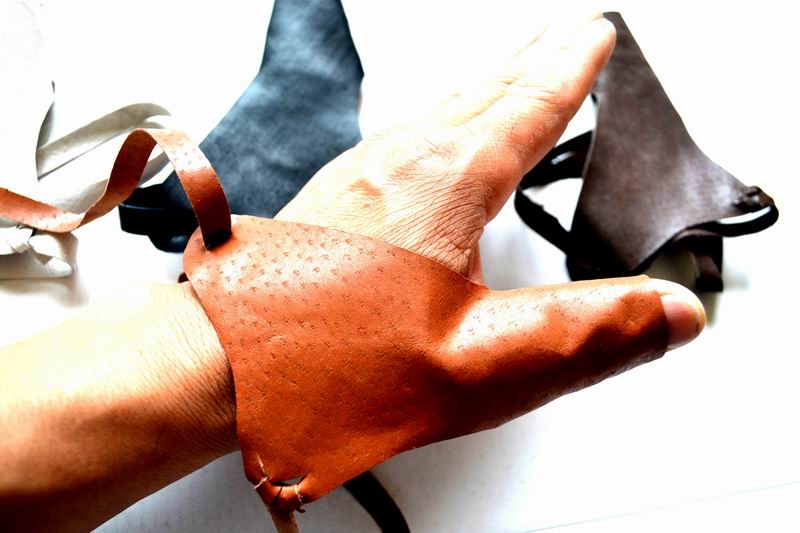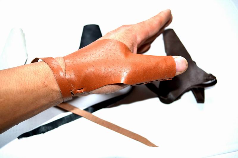 母指射法戴上此护具,可以防止箭羽刮伤母指。