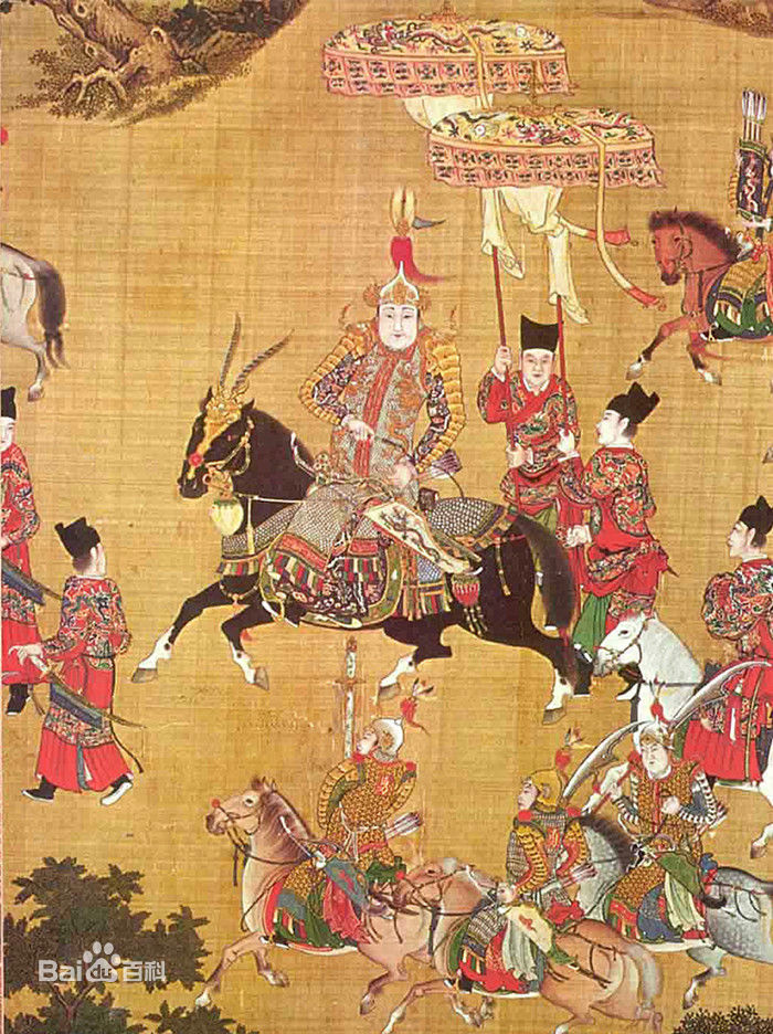 这幅画描绘出明朝皇帝出京谒陵盛况的宫廷画卷。描绘的是皇帝在宫廷侍卫的护送下,骑马出京,声势浩大的来到京郊的十三陵拜先祖,然后再坐船返回北京的情景。皇帝一出一入,相互呼应,气势壮观,栩栩如生。